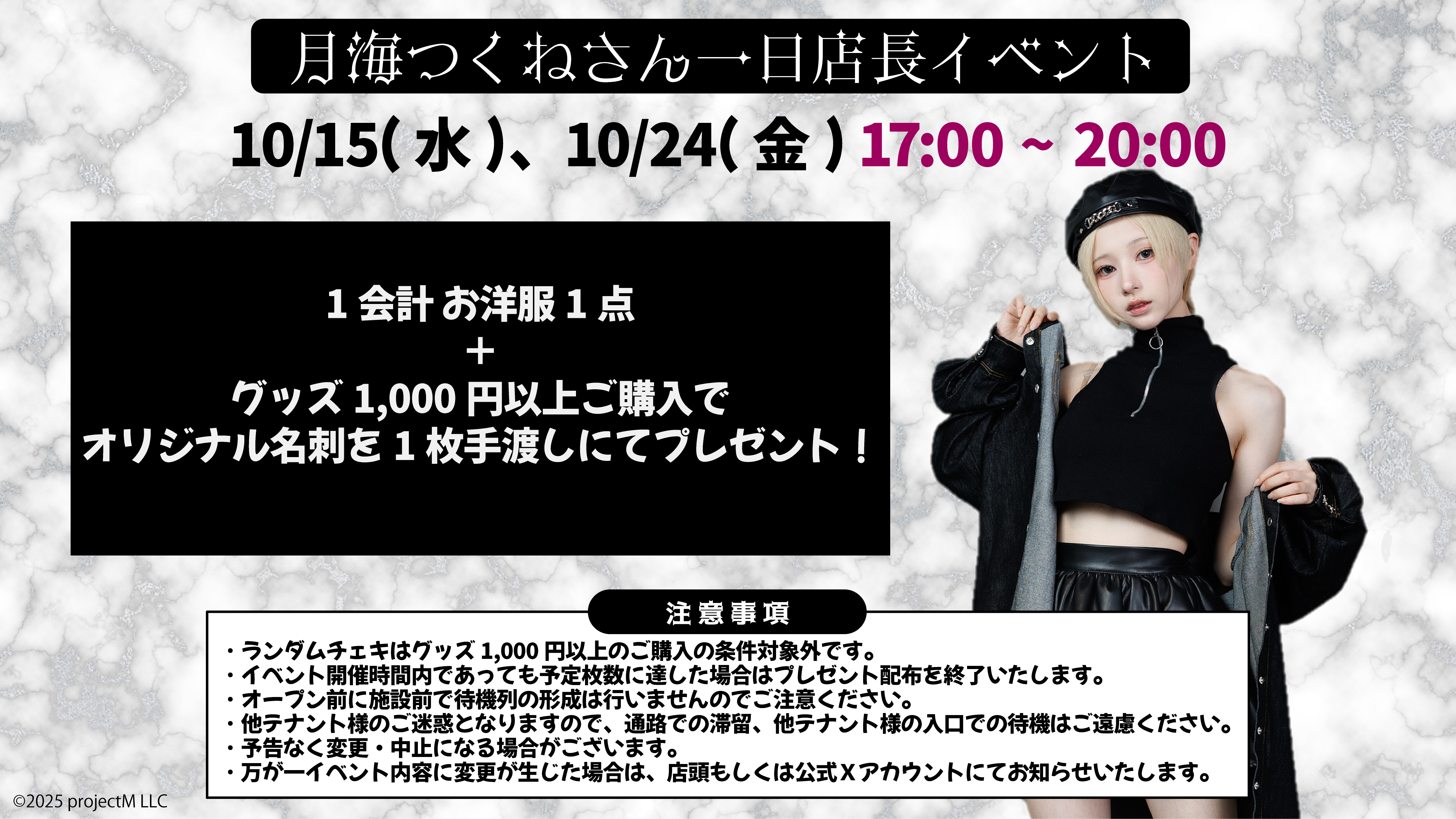 Cr∞mの新作アイテムを実際に手に取ってご覧いただけるほか、イラストレーター4名による月海つくねさんをイメージした描き下ろしイラストを使用したグッズや、月海つくねさんご本人の新作グッズも登場予定です。