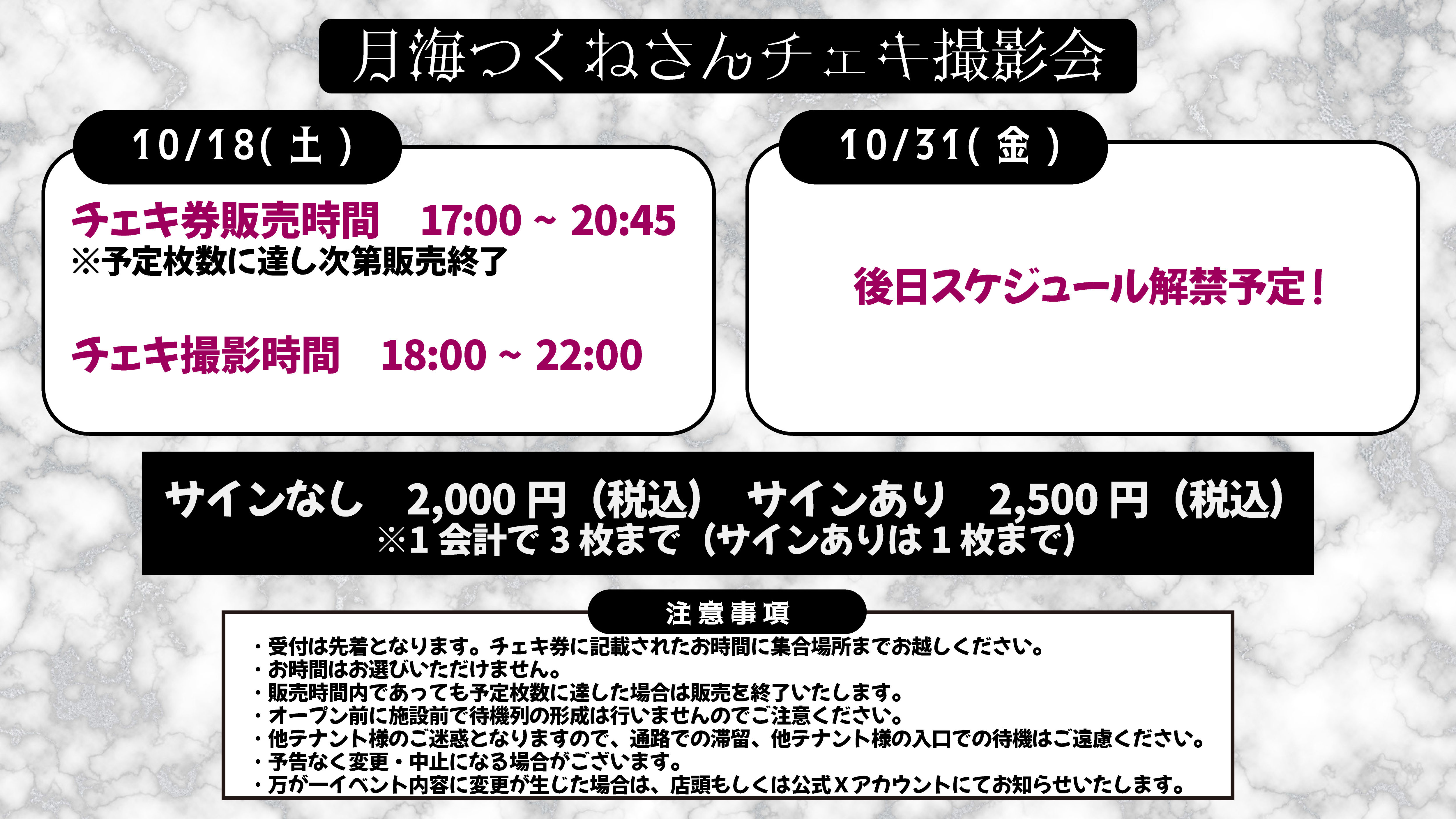 会期中の合計2日間、月海つくねさんのチェキ撮影会を開催いたします。